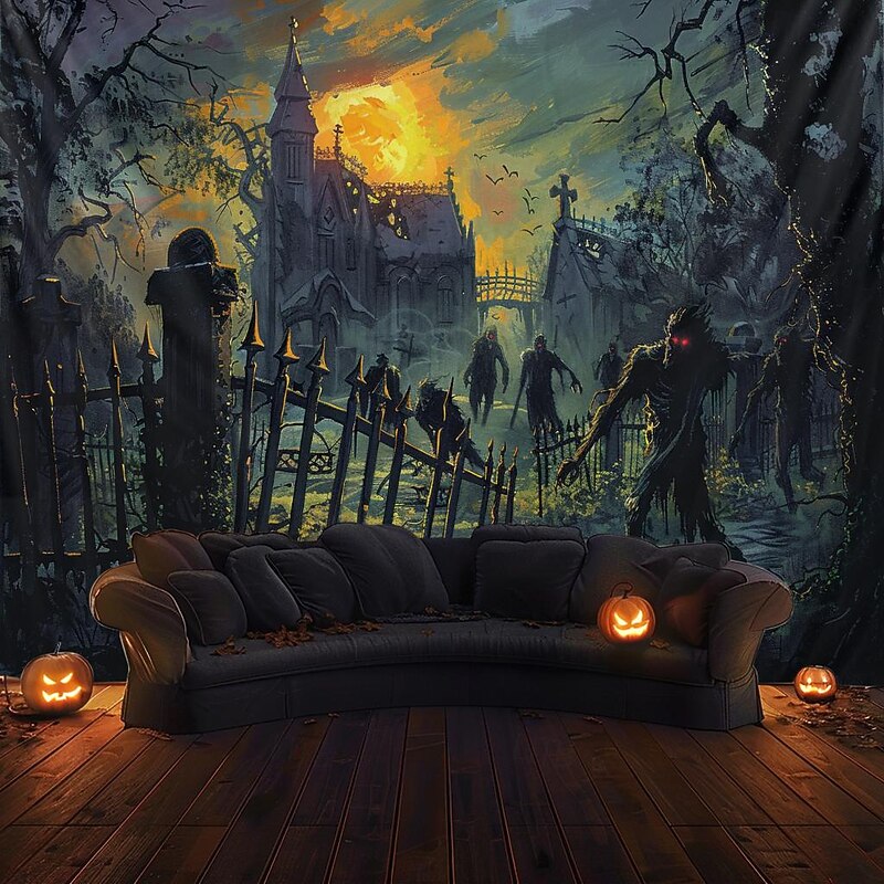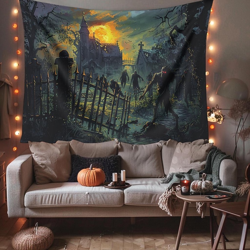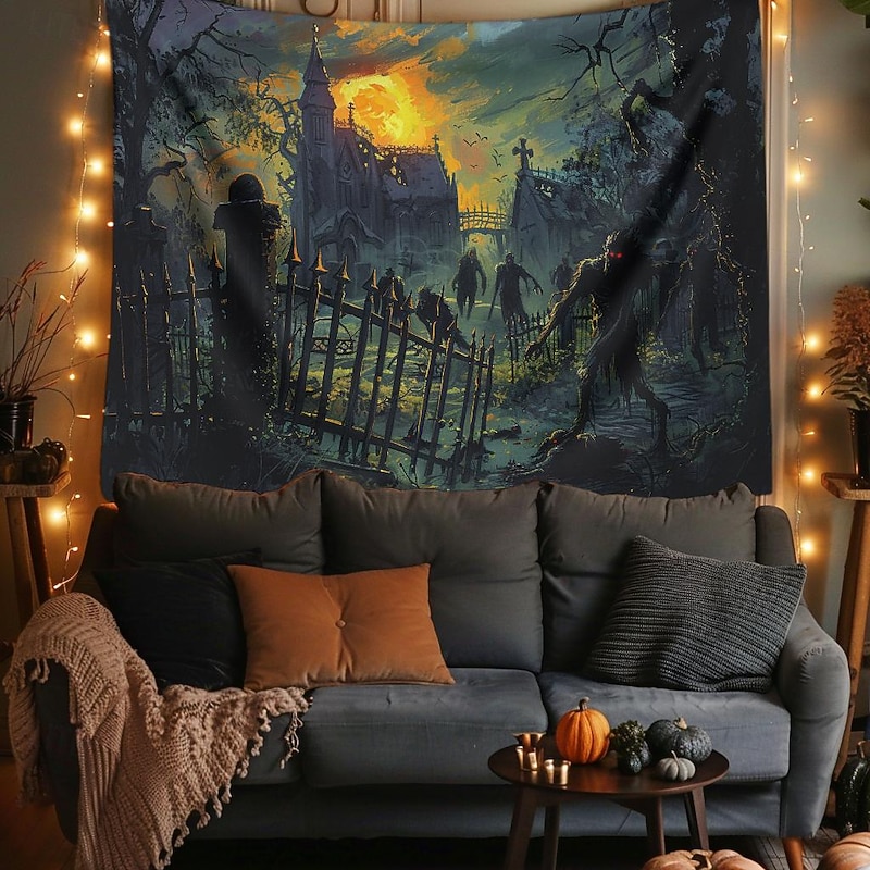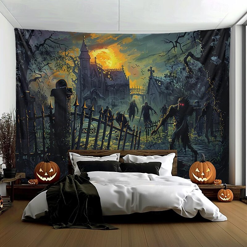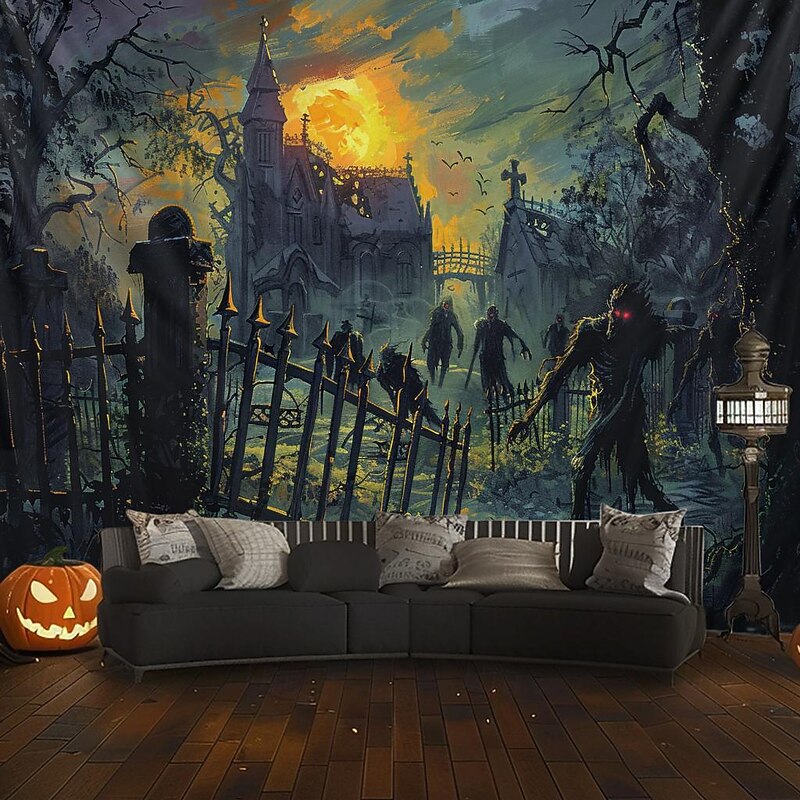 Halloween Decorations Monster Zombies Hanging Tapestry Wall Art Large Tapestry Mural Decor Photograph Backdrop Blanket Curtain Home Bedroom Living Room
