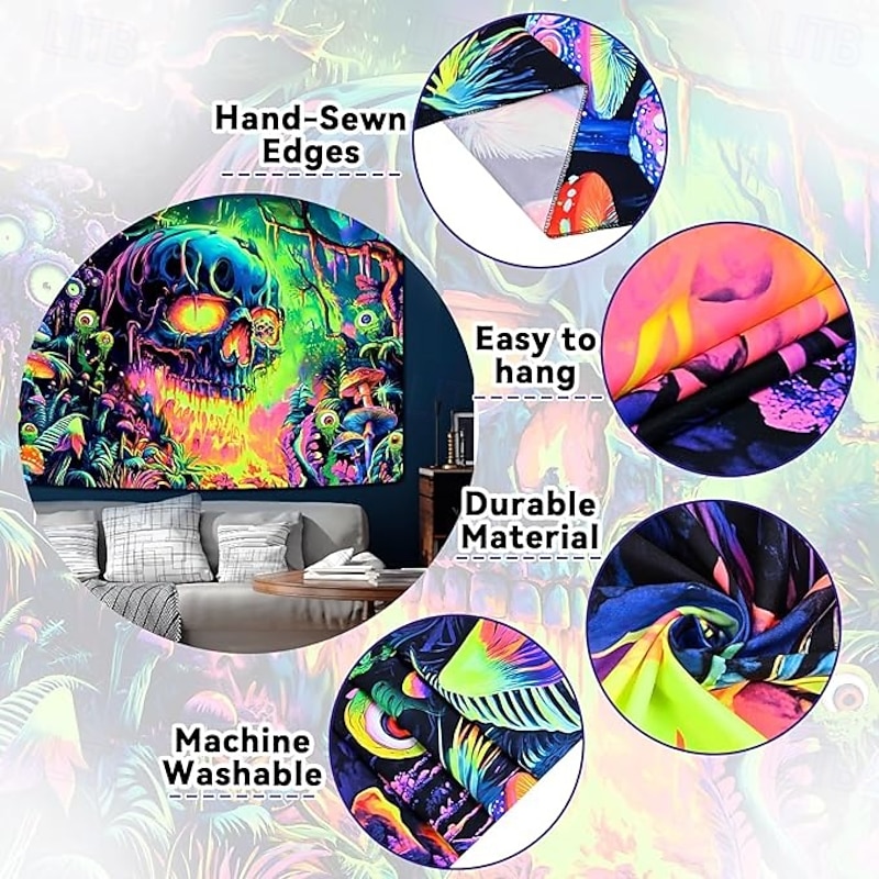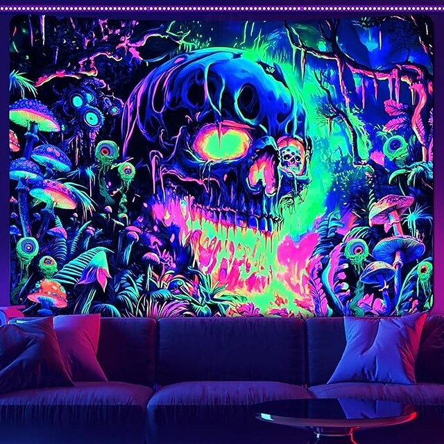 $15.49 - Neon Jungle Skull Blacklight Tapestry – Trippy Horror Wall Art for Psychedelic Room or Halloween Party Decor 2025. Shop for cheap Halloween Wall Tapestries online? Buy at lightinthebox.com on sale today!