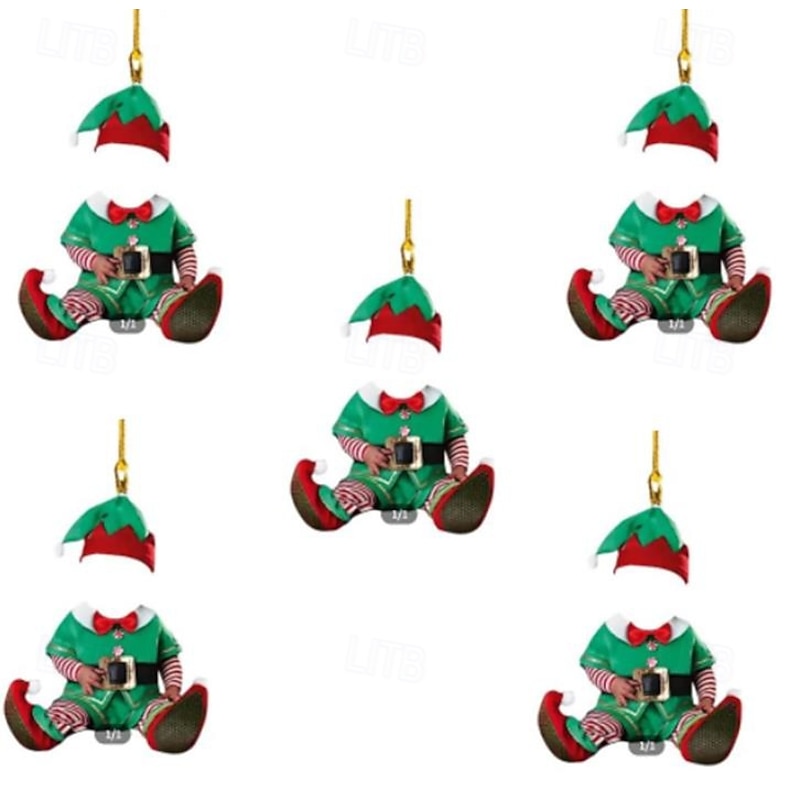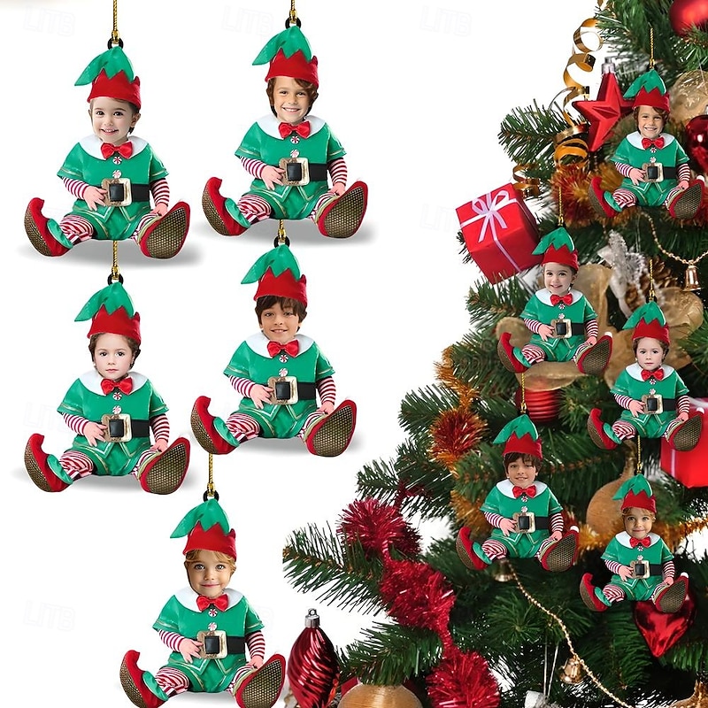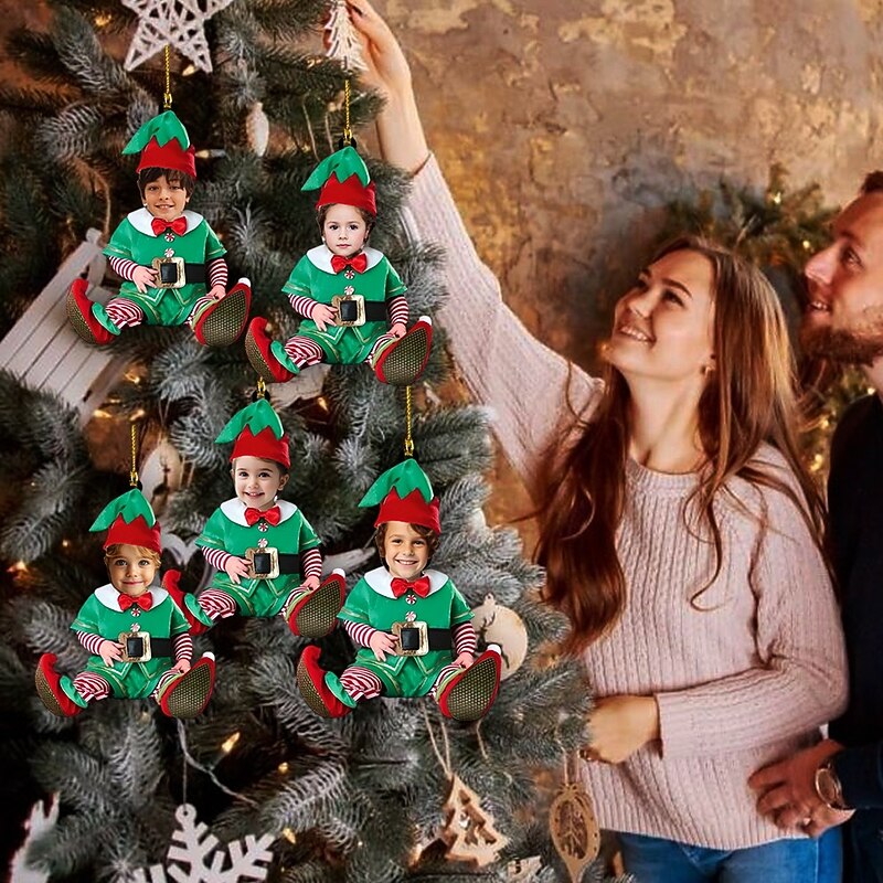 5 Packs Personalized Photo Christmas Ornaments Acrylic 2D Custom Elf Baby Face Christmas Tree Ornaments Xmas Decoration Hanging Pendant Gifts 6