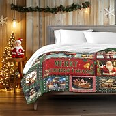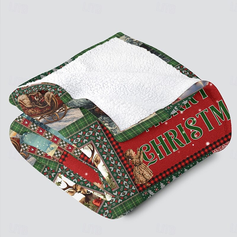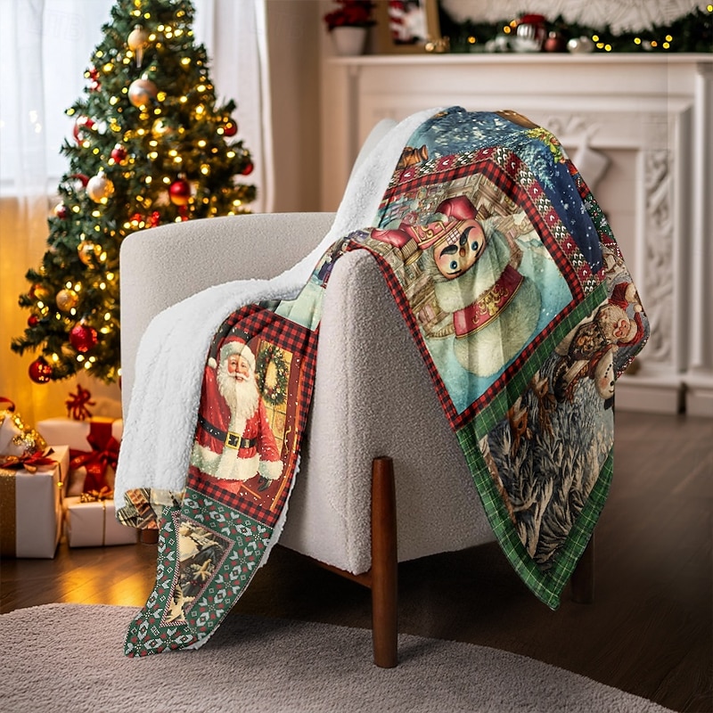 Highlights [Fabric] : Crafted from a luxurious blend of flannel toison and polyester, this Christmas blanket offers exceptional warmth and comfort. The material is soft, cozy, and perfectly suited for snuggling during the chilly holiday season. [Pattern] : Featuring vibrant and festive Christmas imagery, the blanket showcases intricately printed designs of Santa Claus, snowmen, reindeer, and Christmas trees in a rich color palette of reds, greens, and whites. The use of 3D reactive print technology ensures that the patterns are vivid and long-lasting. [Design Highlights] : This blanket features a classic rectangular shape, making it versatile and compatible with various couch and bed sizes. The meticulous stitching enhances its durability and adds a touch of elegance to any room. It's thoughtfully designed to thicken for added warmth without sacrificing style. [Occasions] : Perfect for Christmas gatherings, cozy nights by the fireplace, or adding a festive touch to your bedroom. Whether you're hosting a holiday party or enjoying a quiet winter evening, this blanket adds a charming and warm element to your home decor. [Size] : Available in a convenient 150cm x 130cm size, this blanket is ideal for personal use on couches or beds. It offers ample coverage, making it a great choice for both children and adults seeking extra warmth during the winter months. Perfect for everyday use. High quality materials and excellent craftsmanship ensure long-lasting durability.