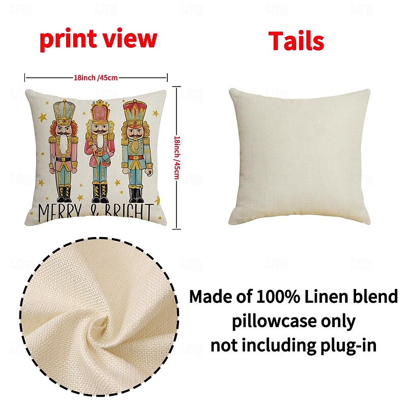 $4.99 - New Christmas Nutcracker Pillow Cover, Linen Printed Decorative Cushion, Cartoon Wooden Soldier Throw Pillow for Holiday Home Decor 2025. Shop for cheap Christmas Bedding online? Buy at lightinthebox.com on sale today!