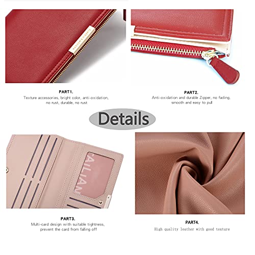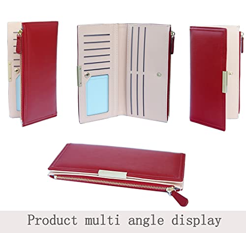 Brand: MokozeColor: RedMaterial: LeatherStyle: ModernPattern: SolidProduct Material: Lined in durable fabric use faux leather lining. Our slim wallet is made of high quality PU leather, which is both luxurious and durable, and equipped with a smooth zipperSize and Color: This Pink clutch wallet measures (L) 7.7x (W) 3.9x (H) 0.8 inches / (L) 19.5x (W) 10x (H) 2 cm. Weight is 0.3 lbs/0.137 kg. It is available in 5 different colors, you can choose to like the color that suits youProduct Attributes: PU leather card wallet, closure type hasp minimalism design, soft synthetic leather with snap and zipper closure design, safe and easy to use. Multi coloured, smooth zipper and detailed streamlined stitchingProduct Function: This zipper wallet multi-storey fold, multi-cards, multi-function wallet for women - 11 credit cards slots, 3 full bills compartmens, 1 zipper coin and cell phone purse pocket, 1 ID photo card slot, so many functions, fashionable and minimalistExquisite Gift: This women PU leather wallet makes a thoughtful gift for your wife, mother, girlfriend, daughter, or female friend Perfect for everyday use. High quality materials and excellent craftsmanship ensure long-lasting durability.