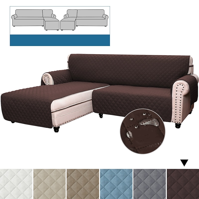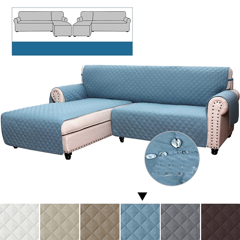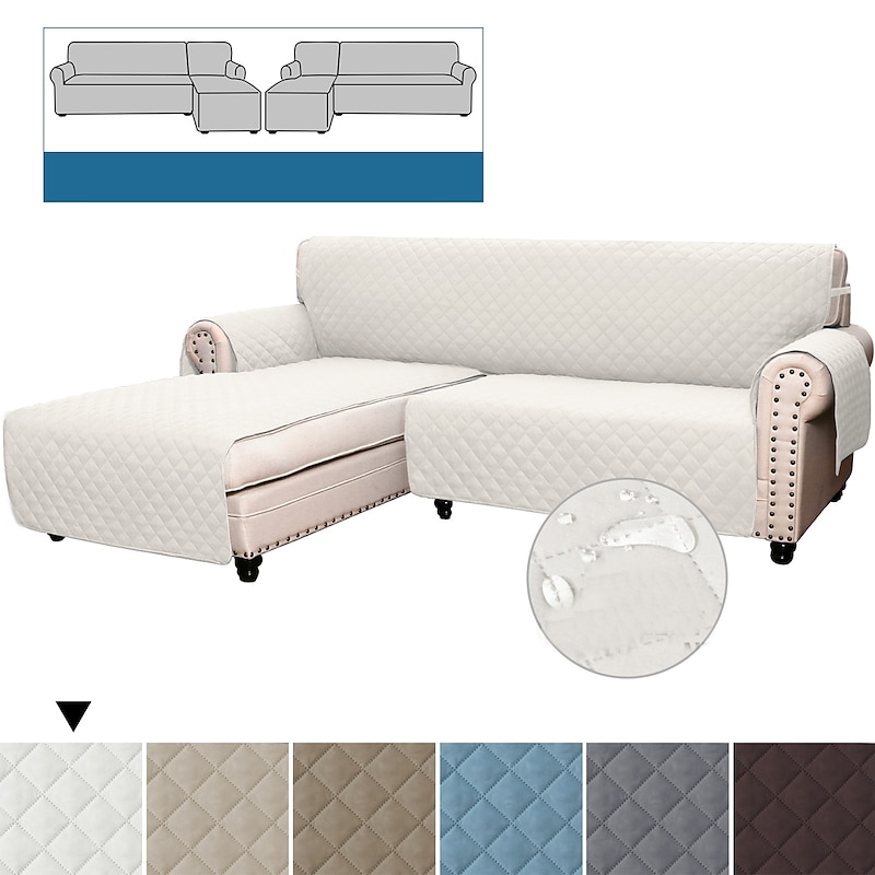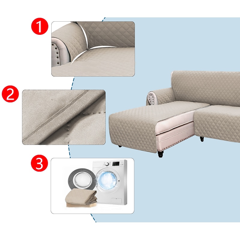 Quilted Sofa Slipcover L Shape Sofa Cover Sectional Couch Cover Chaise Lounge Slip Cover Reversible Sofa Cover Furniture Protector Cover for Pets Kids Children Dog Cat