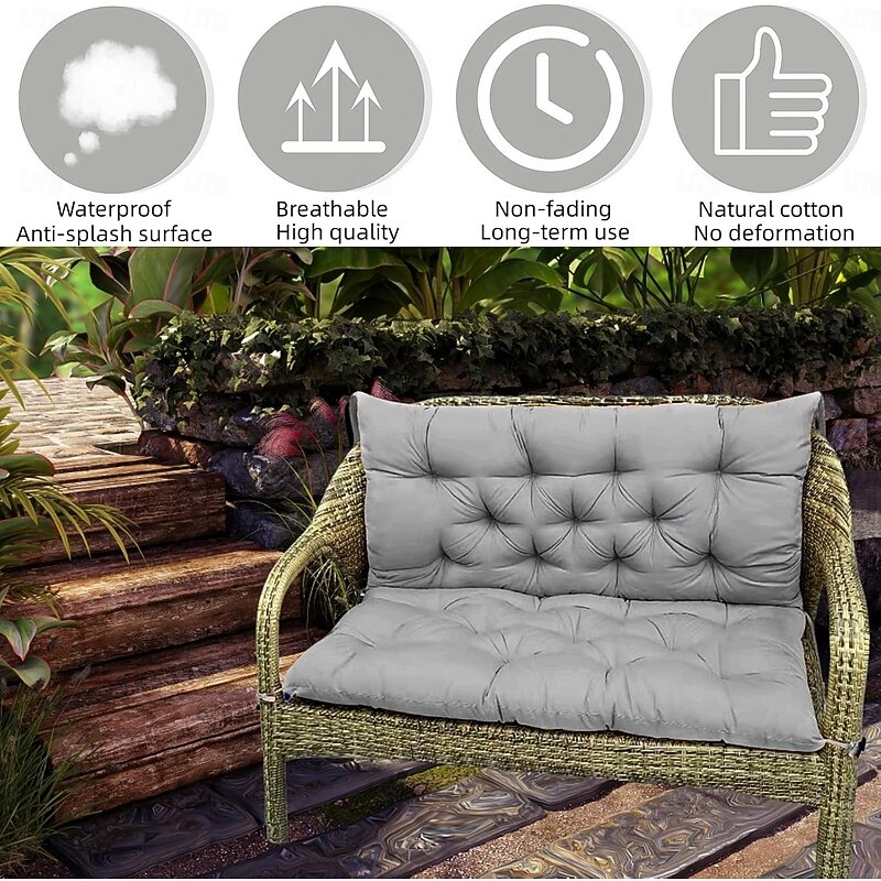 Porch Swing Cushions Features: Waterproof, Soft, Skin-Friendly, Good Resilience, Not Easy to Deform, With Fixed Straps to Prevent Slipping.