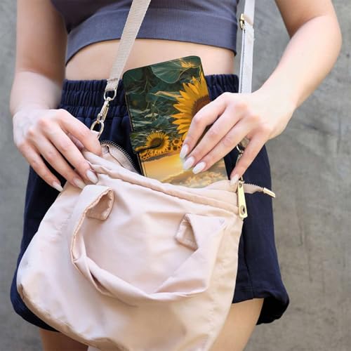 HOT ! Sunset Over Sunflower Field PU Leather Womens Wallet Large Capacity Zippered Bifold Purse with 12 Card Slot Coin Case