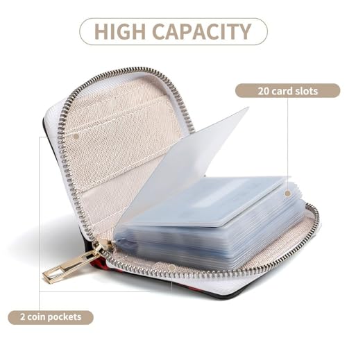 • Dimensions: Measures 4.5x3.15 inches, with 20 PVC card slots and 2 coin pockets for ample storage.