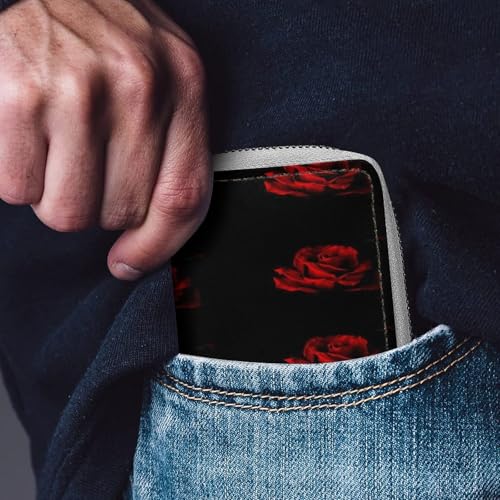 HOT ! Women Leather Coin wallet, Key Change Organizer Zipper Card Holder Purse Clutch Pouch Pocket 4.5x3.15 in Print Red Rose Petal on Black Background
