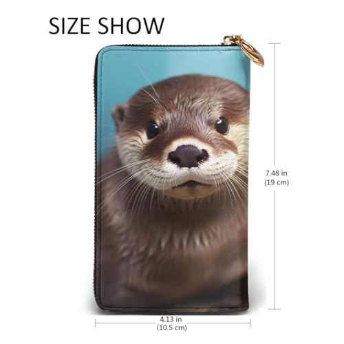 HOT ! cute otter Wallet for Men Women Long Purse Leather Clutch Large Business Handbag Travel Phone Holder Credit Card Holder Money Case with Zipper Leather Wallets Gift