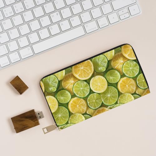 HOT ! Leather Thin Slim Wallets for Women Men - Fashion Realistic Lemons Print Card Wallet Holder with Zipper