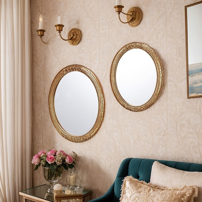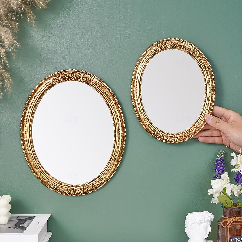 Why Choose 1PC A Classic Lace-patterned Oval-shaped Decorative Pendant Made of Golden Resin A Creative Makeup Mirror Suitable for Wall Decoration Makeup Table Mirror and Photography Props?