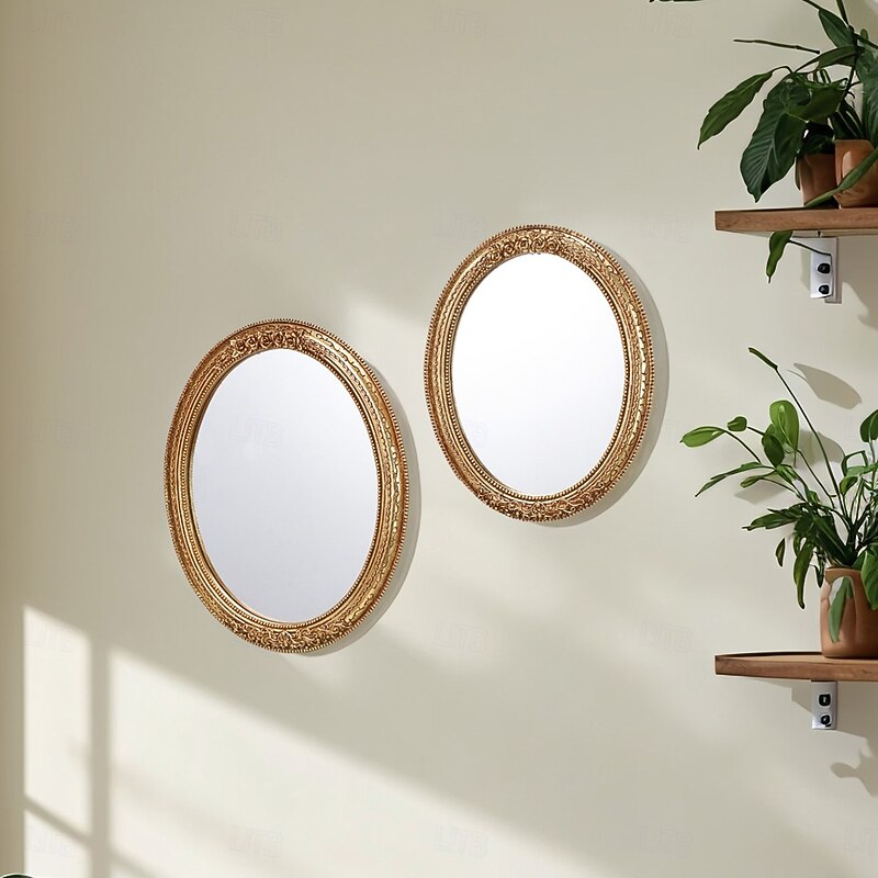 $16.99 - Golden Resin Oval Pendant Makeup Mirror for Wall and Table Decor 2025. Shop for cheap Sculptures online? Buy at lightinthebox.com on sale today!