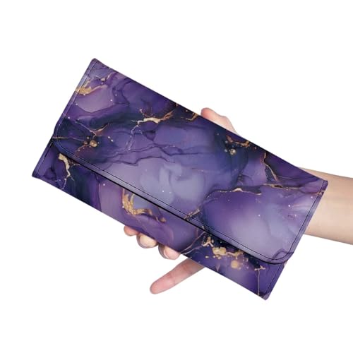 AFPANQZ Purple Marble Womens Wallets, Leather Trifold Multi Card Holder Slots Wallet, Elegant Clutch Trifold Purses Zip Coins Pocket, Buckle Closure Clutch Wallet 6