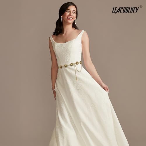 LEACOOLKEY Western Metal Concho Belt for Women Cowgirl Boho Waist Chain Belt for Dresses Jeans Pants