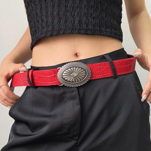 More information about Women Red Western Belt with Star Buckle Vintage Ladies Leather Belts for Pants Jeans Dress Cowboy Cowgirls Belt