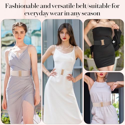 • 【Fashion Design】: The elastic belts for women feature gold buckles and three colors(Black+White+Khaki). The 6.5cm width of the wide belts for women can create waist-defining silhouette. The wide belts for women can adds a touch of elegance to your look