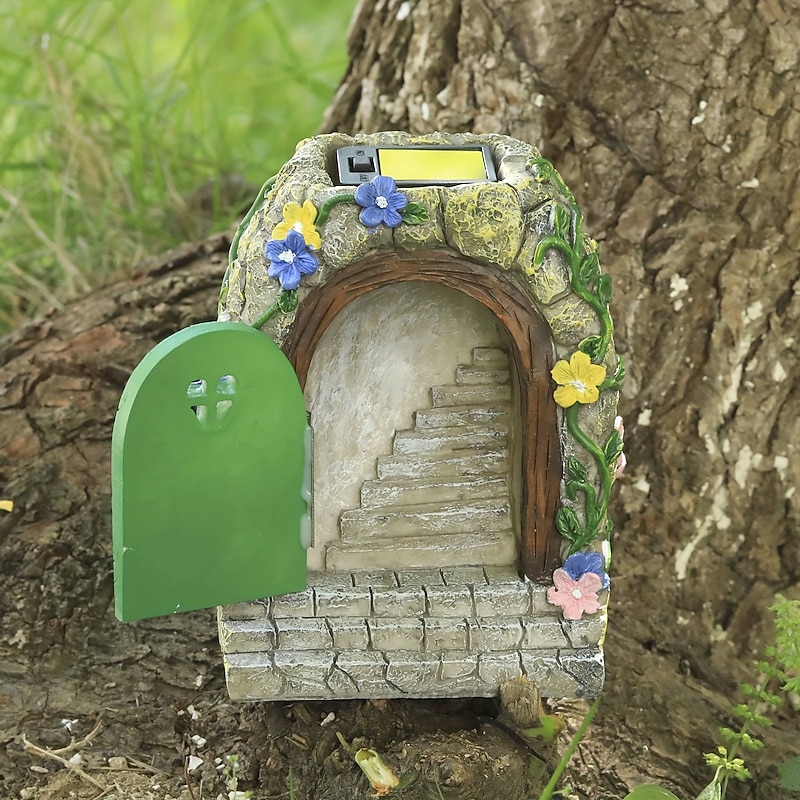 HOT ! Solar Fairy Door Garden Miniatures,Fairy Door with Steps, Resin Fairy Garden Accessories, Tree Garden Home Decor, Waterproof Garden Glow Ornaments