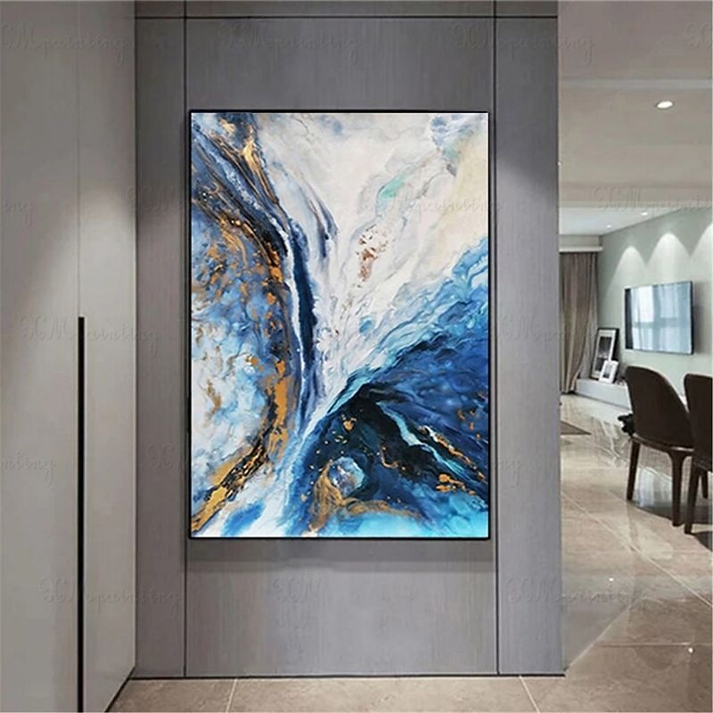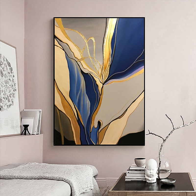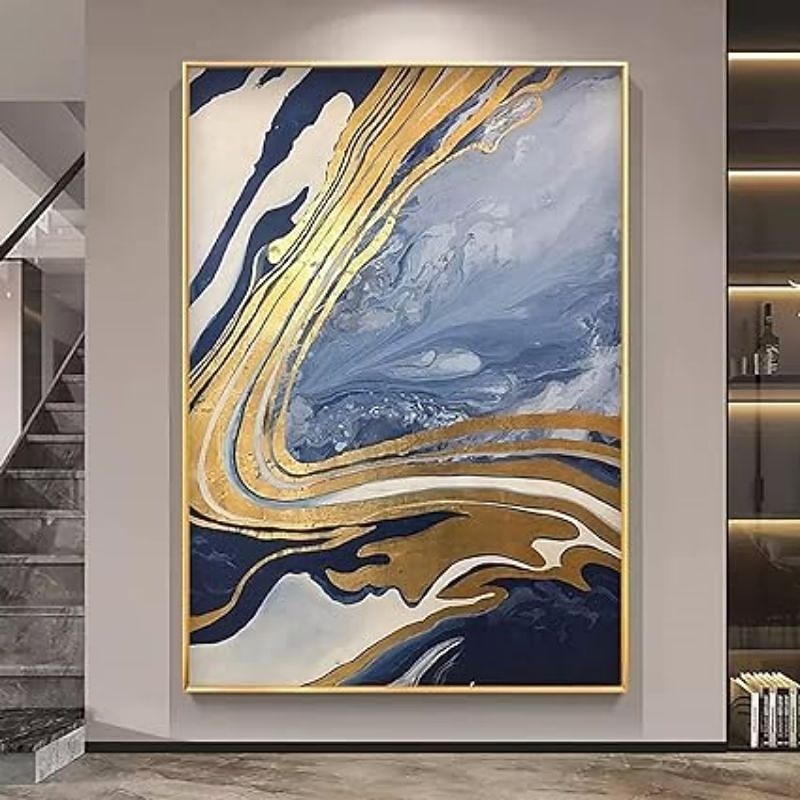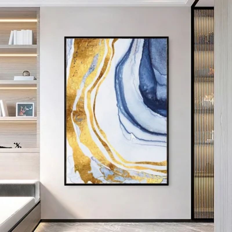 Handmade Oil Painting Canvas Wall Art Decoration Abstract Art Flowing Gold Foil for Home Decor Stretched Frame Hanging Painting 9