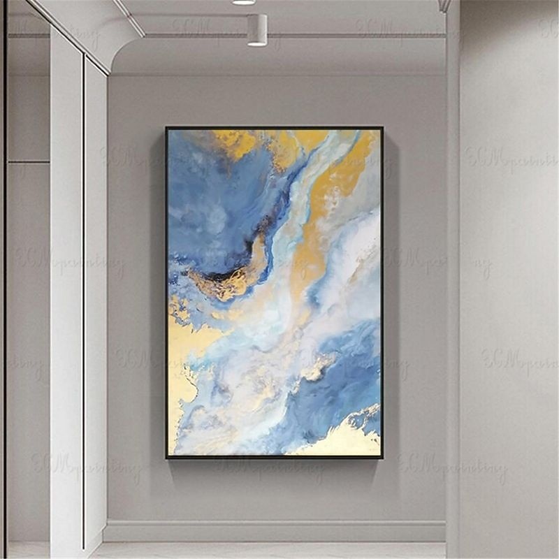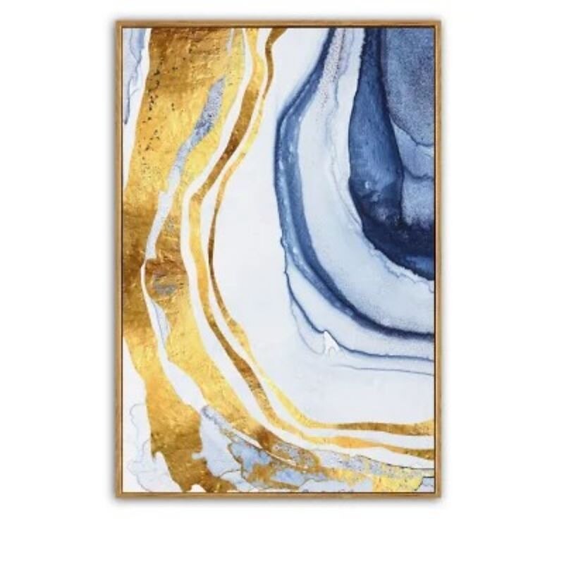HOT ! Handmade Oil Painting Canvas Wall Art Decoration Abstract Art Flowing Gold Foil for Home Decor Stretched Frame Hanging Painting