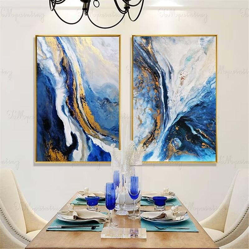 Handmade Oil Painting Canvas Wall Art Decoration Abstract Art Flowing Gold Foil for Home Decor Stretched Frame Hanging Painting 8
