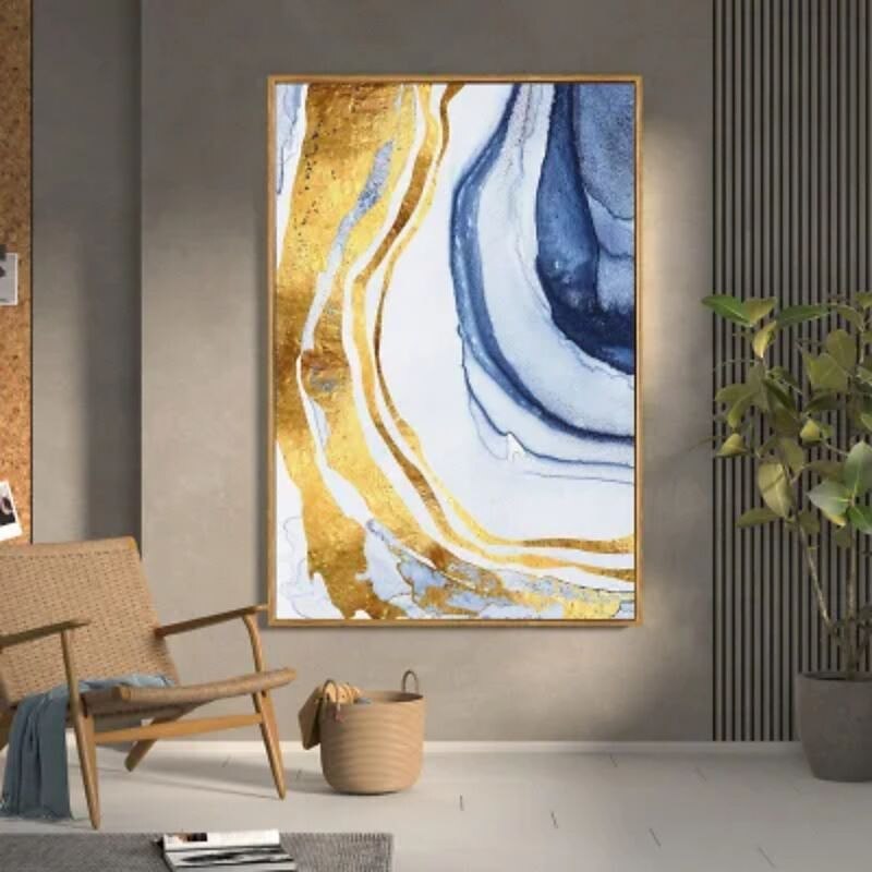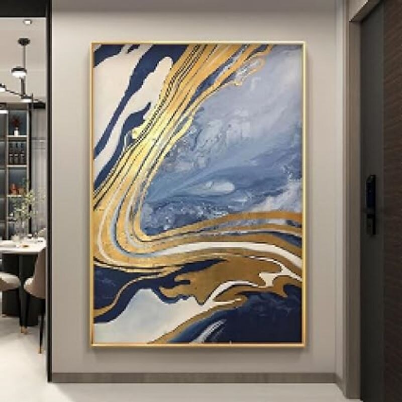 More information about Handmade Oil Painting Canvas Wall Art Decoration Abstract Art Flowing Gold Foil for Home Decor Stretched Frame Hanging Painting
