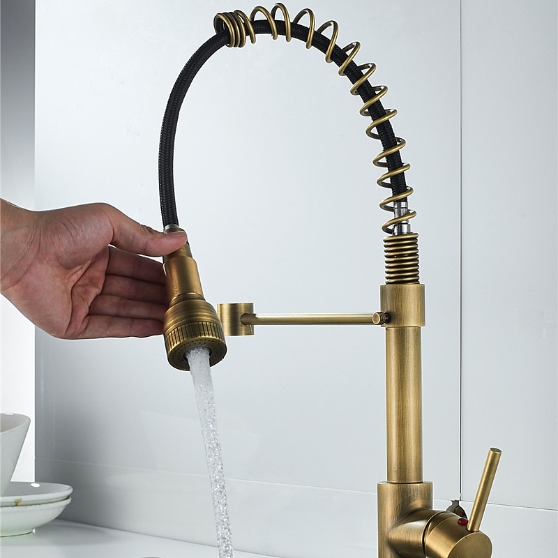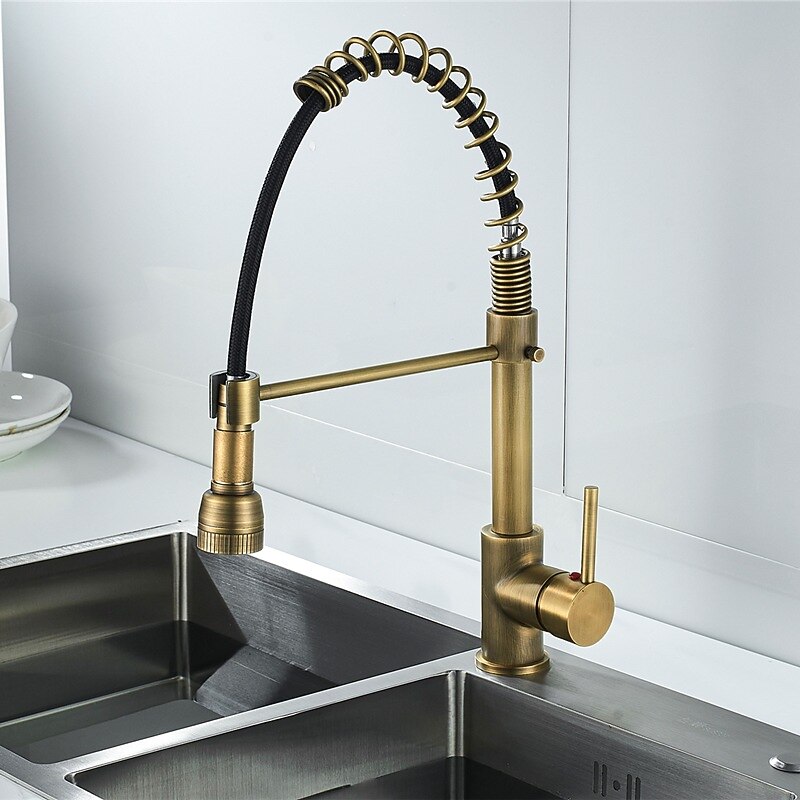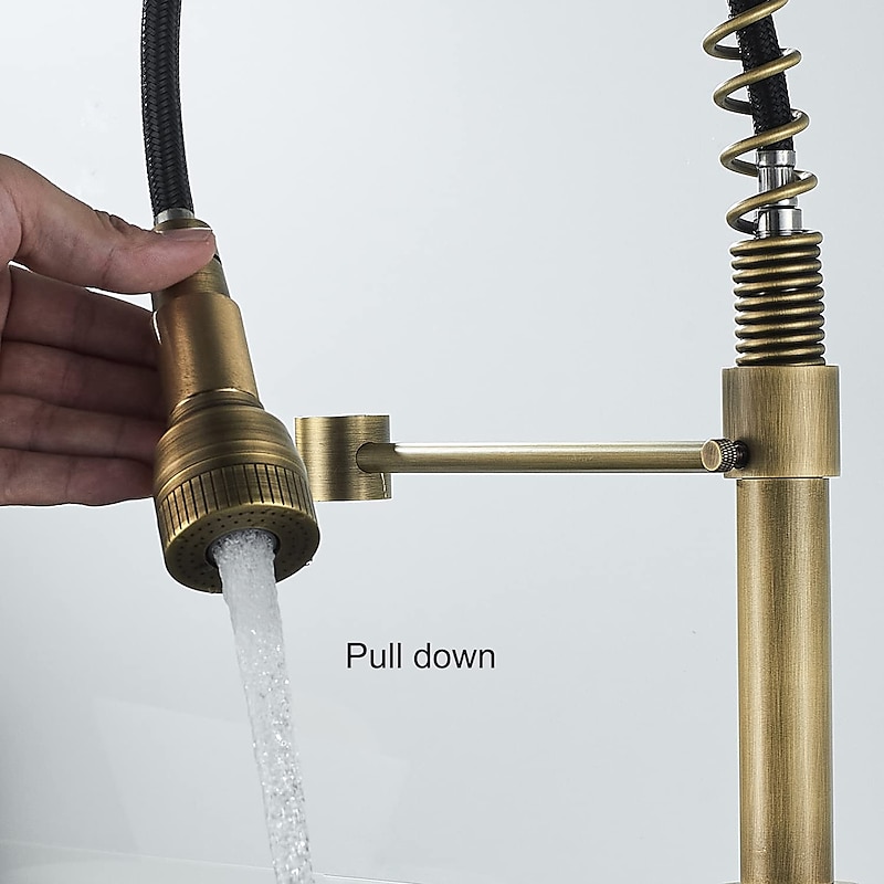 Features: Spring neck design, Suitable for Home Sink or Granite Counter Tops. 360 Degree Spout and two spray modes, we have a soft spray mode and a strong spray mode. Comfortable to use, Single handle design integrates to control water temperature and flow volume easily.