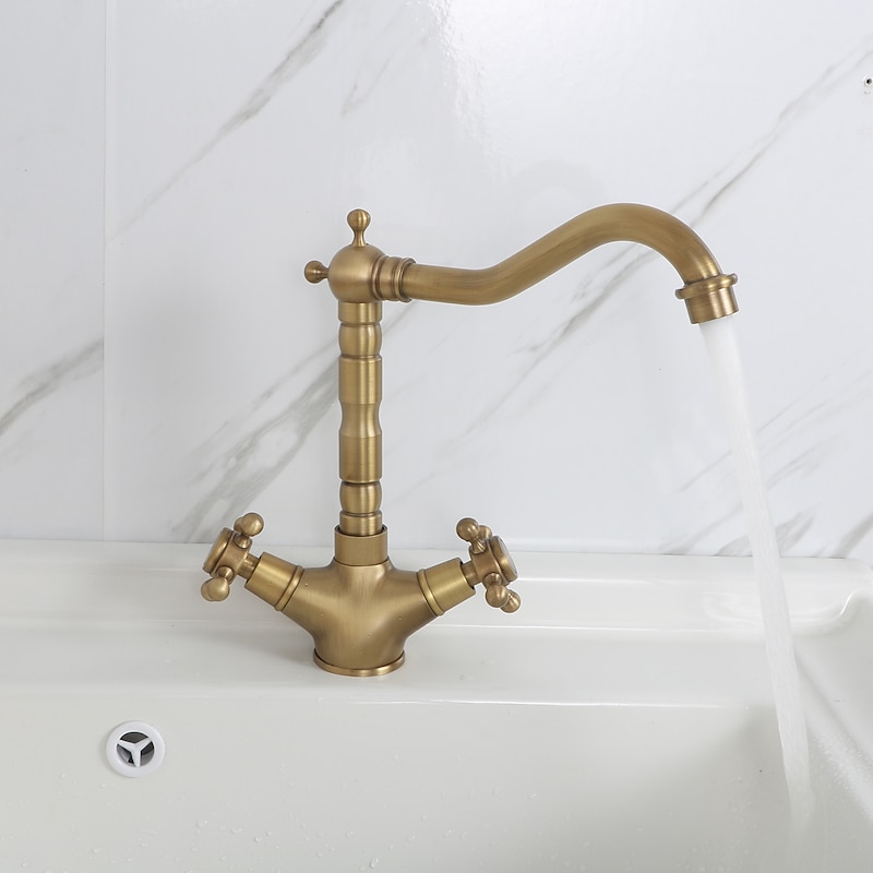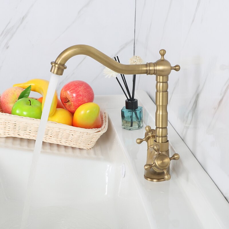 Why Choose Single Handle Kitchen Faucet Antique Brass One Hole Rotatable Standard Spout/Tall/High Arc, Brass Antique/COD Kitchen Faucet with Supply Lines / Adjustable to Cold and Hot Water?