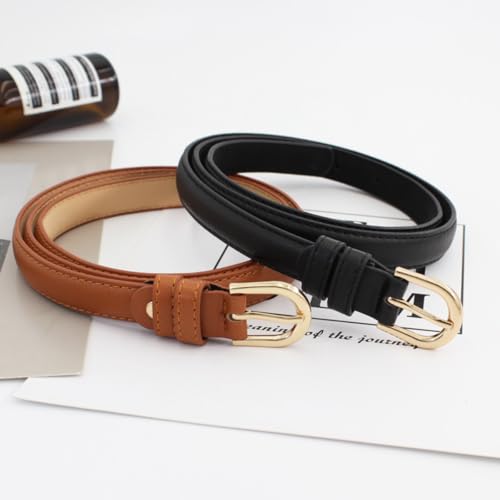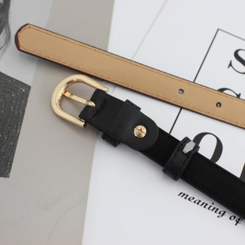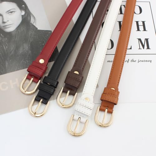 Women's Skinny Belt, Leather Waist Belt, Thin Belts with Gold Alloy Buckle Belt for Jeans & Dress
