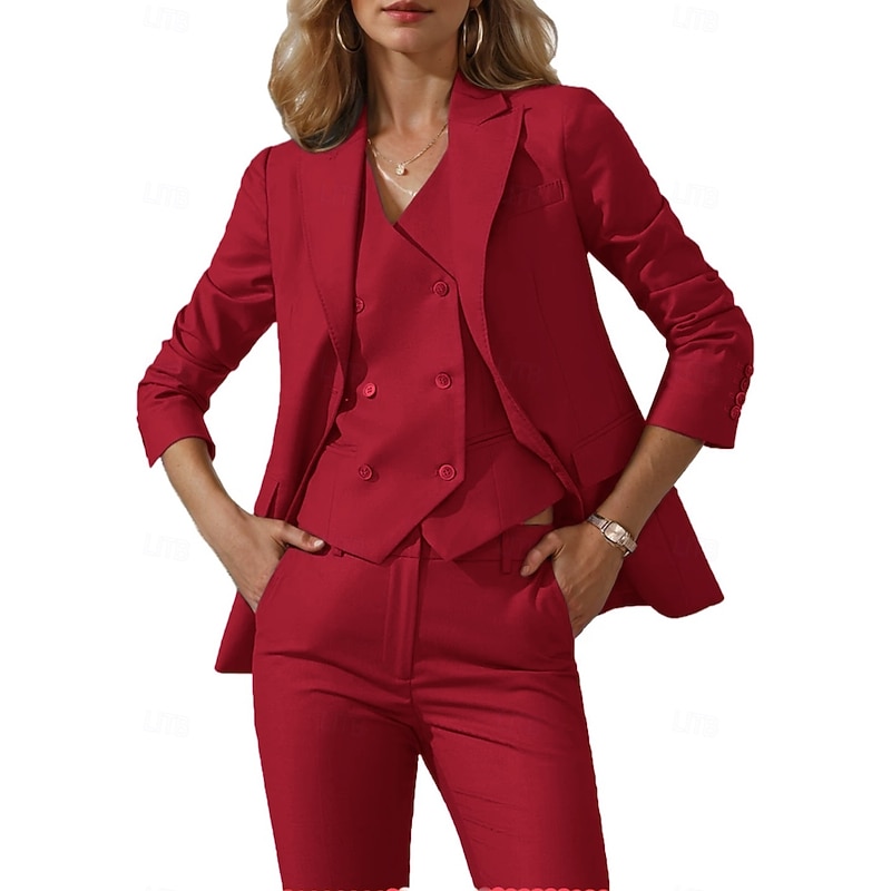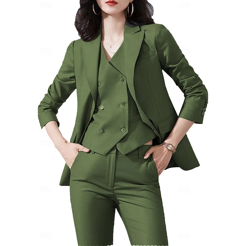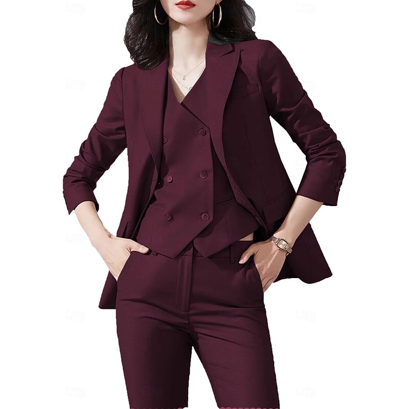 More information about Women's 3 Pieces Suits Formal Wedding Guest Stretch Crepe Elegant Simple Minimalist 3/4 Sleeve Pleated Floor Length Peak Lapel Single Breasted