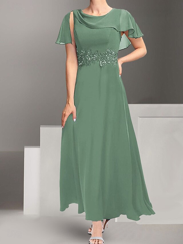 Why Choose Dress Mother of the Bride Dress Elegant Simple Crew Neck Ankle Length Polyester Short Sleeve with Lace Solid Color?