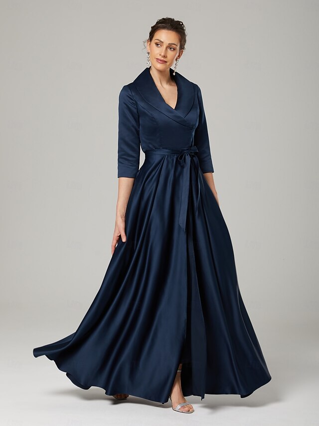 Why Choose Jumpsuit Mother of the Bride Elegant Party Simple Shirt Collar Ankle Length Satin 3/4 Length Sleeve with Bow(s)?