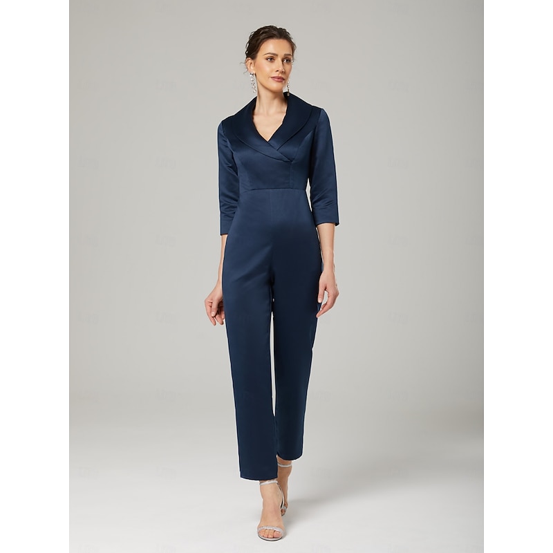 This Jumpsuit Mother of the Bride Elegant Party Simple Shirt Collar Ankle Length Satin 3/4 Length Sleeve with Bow(s) combines elegant design with practical functionality. Every detail has been carefully considered to ensure you get the best possible experience. The high quality construction means this product will serve you well for years to come.