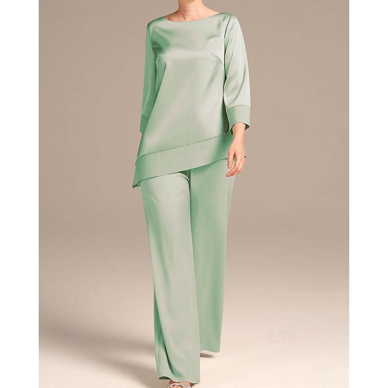 At rhapsodyofexperiences.com, we believe in providing our customers with only the best products. This Pantsuit Mother of the Bride Elegant Simple Minimalist Boat Neck Floor Length Satin 3/4 Length Sleeve Wrap Included with Solid Color is designed with attention to detail and high quality craftsmanship that you can see and feel. Whether you're looking for functionality, style, or both, this product delivers exceptional value.