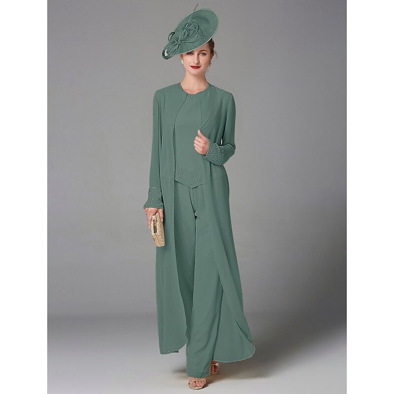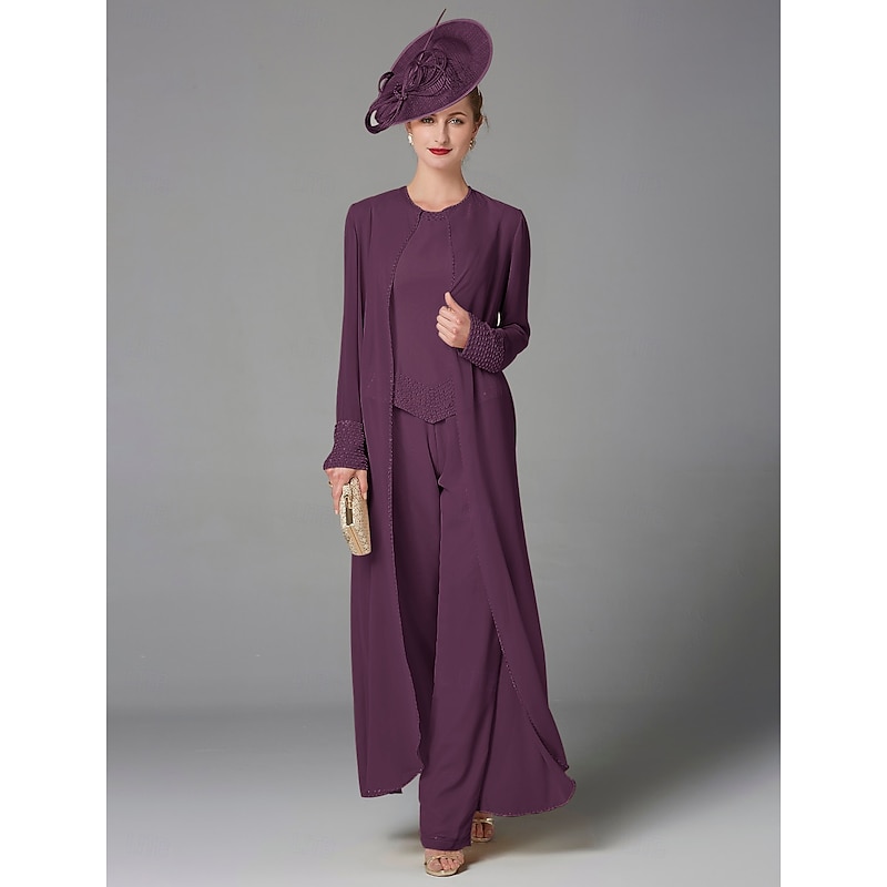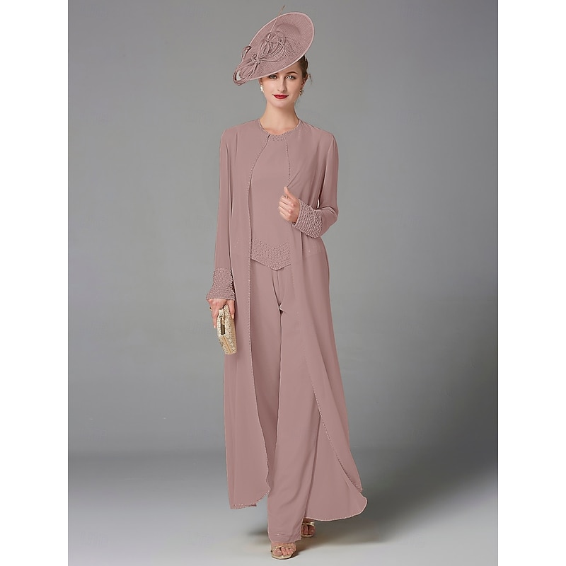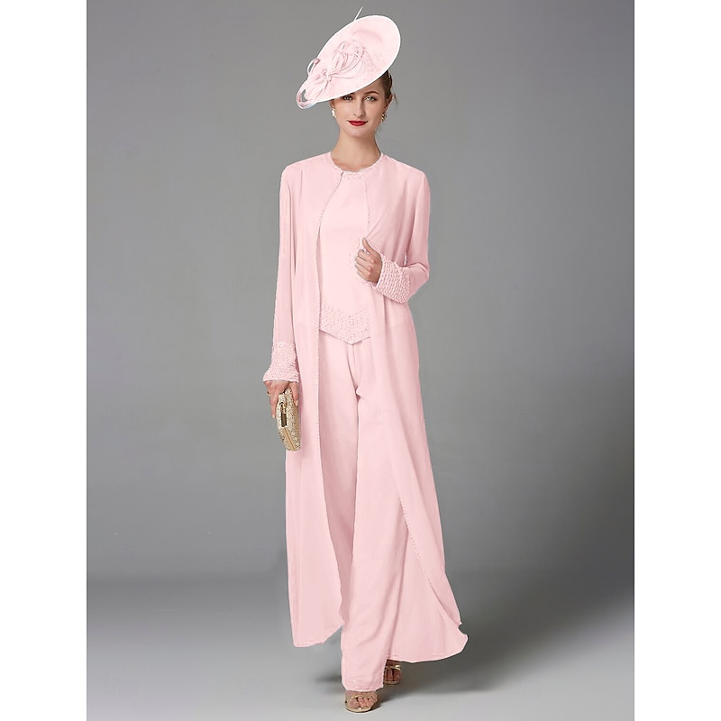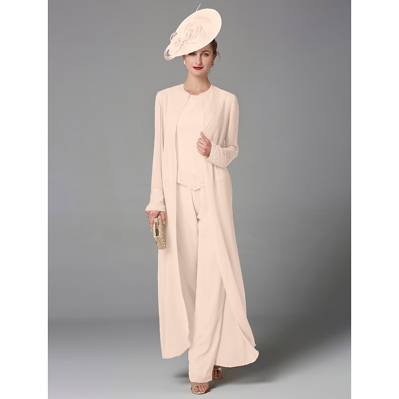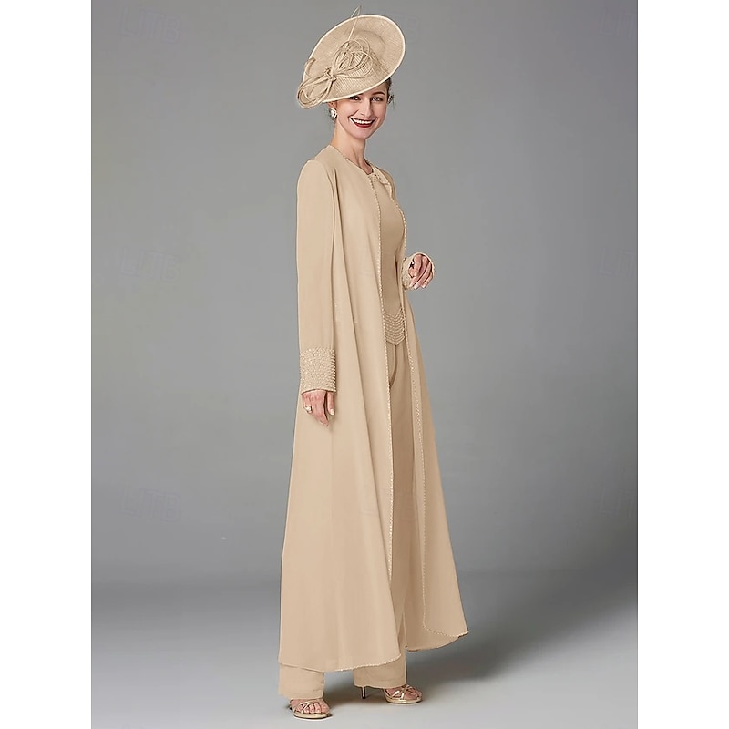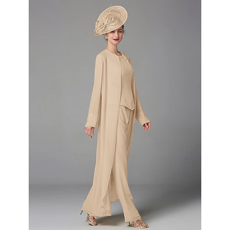 This Beach Wedding Pantsuit 3 Piece Mother of the Bride Formal Wedding Guest Elegant Plus Size Wrap Included Bateau Neck Floor Length Chiffon Long Sleeve Wrap Included with Beading combines elegant design with practical functionality. Every detail has been carefully considered to ensure you get the best possible experience. The high quality construction means this product will serve you well for years to come.