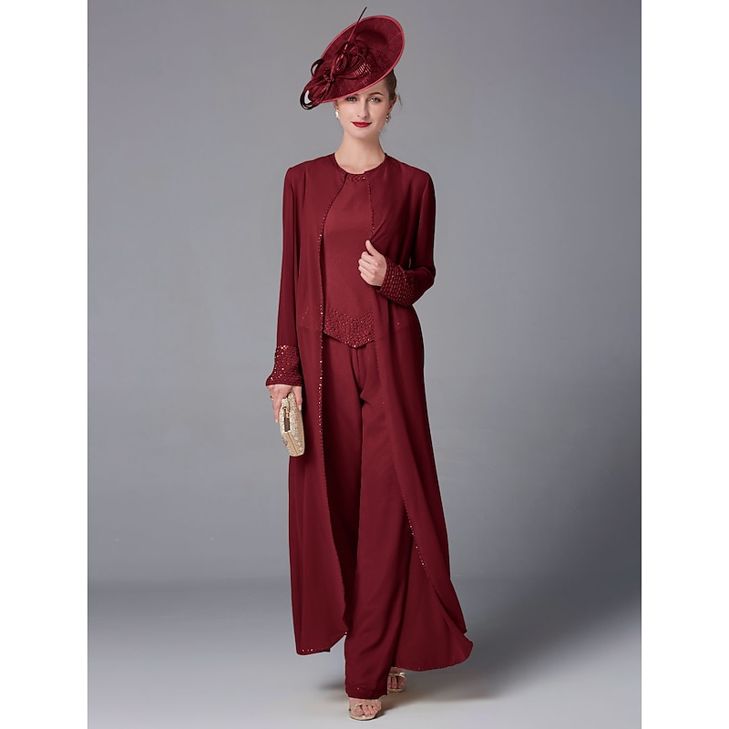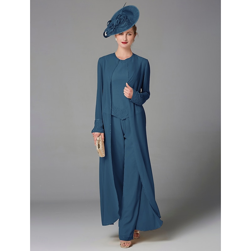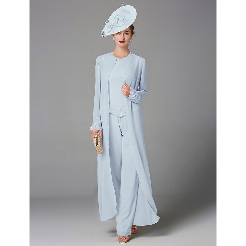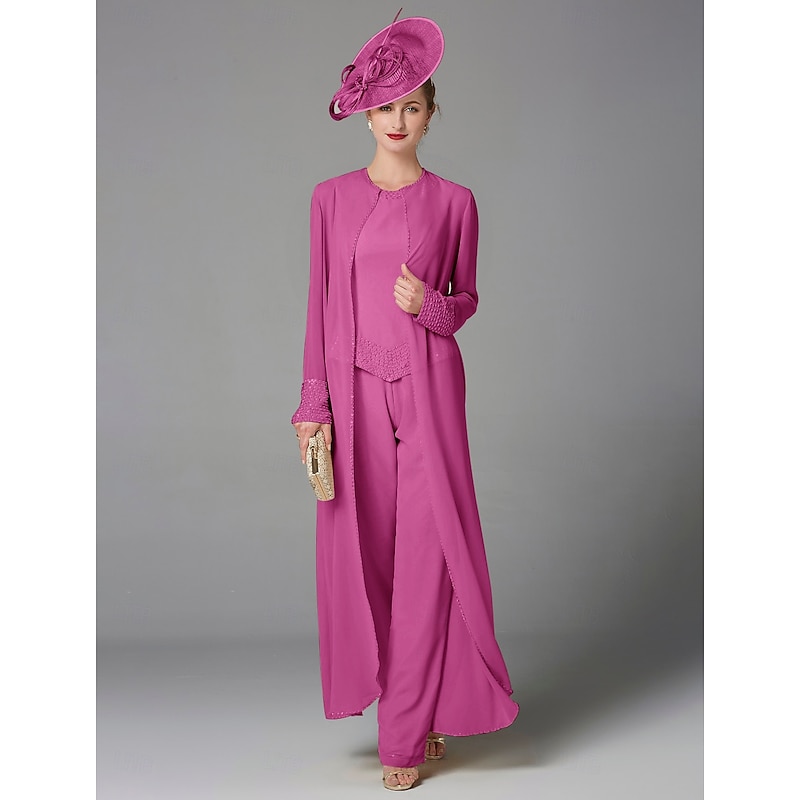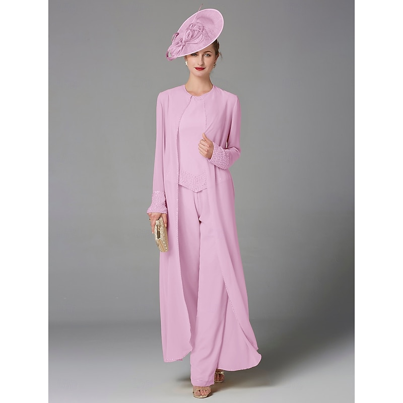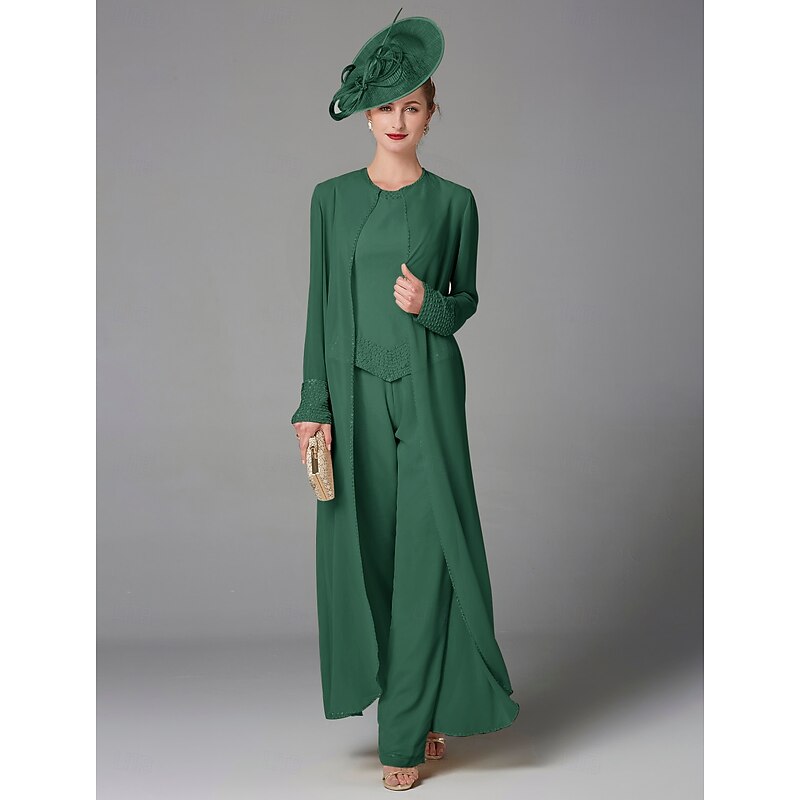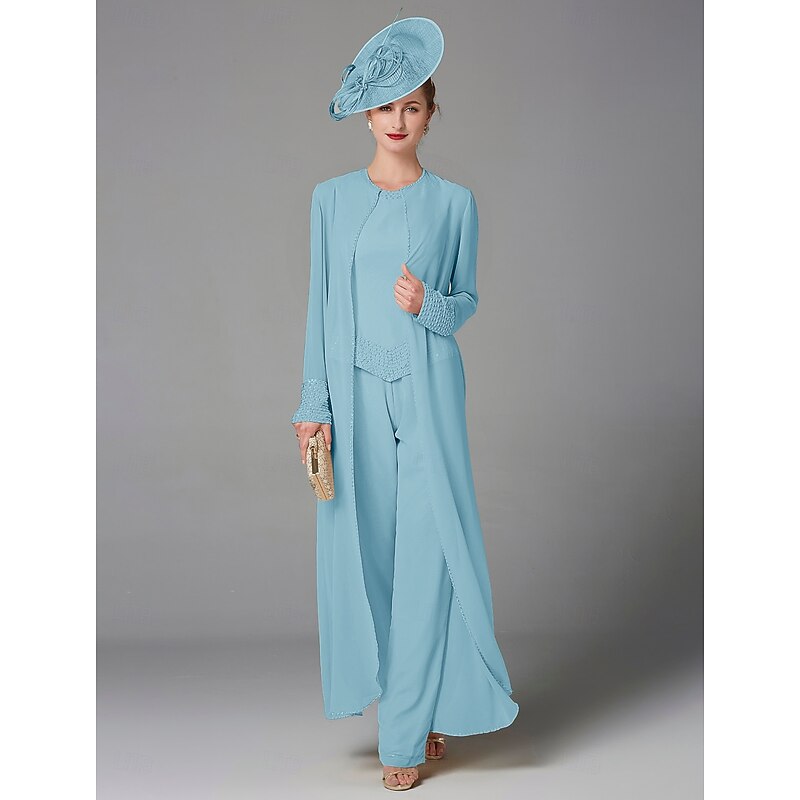 This Beach Wedding Pantsuit 3 Piece Mother of the Bride Formal Wedding Guest Elegant Plus Size Wrap Included Bateau Neck Floor Length Chiffon Long Sleeve Wrap Included with Beading combines elegant design with practical functionality. Every detail has been carefully considered to ensure you get the best possible experience. The high quality construction means this product will serve you well for years to come.