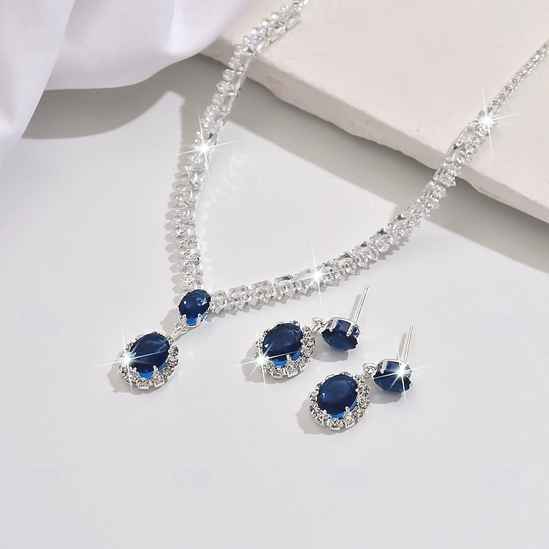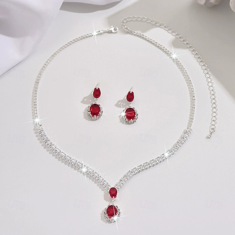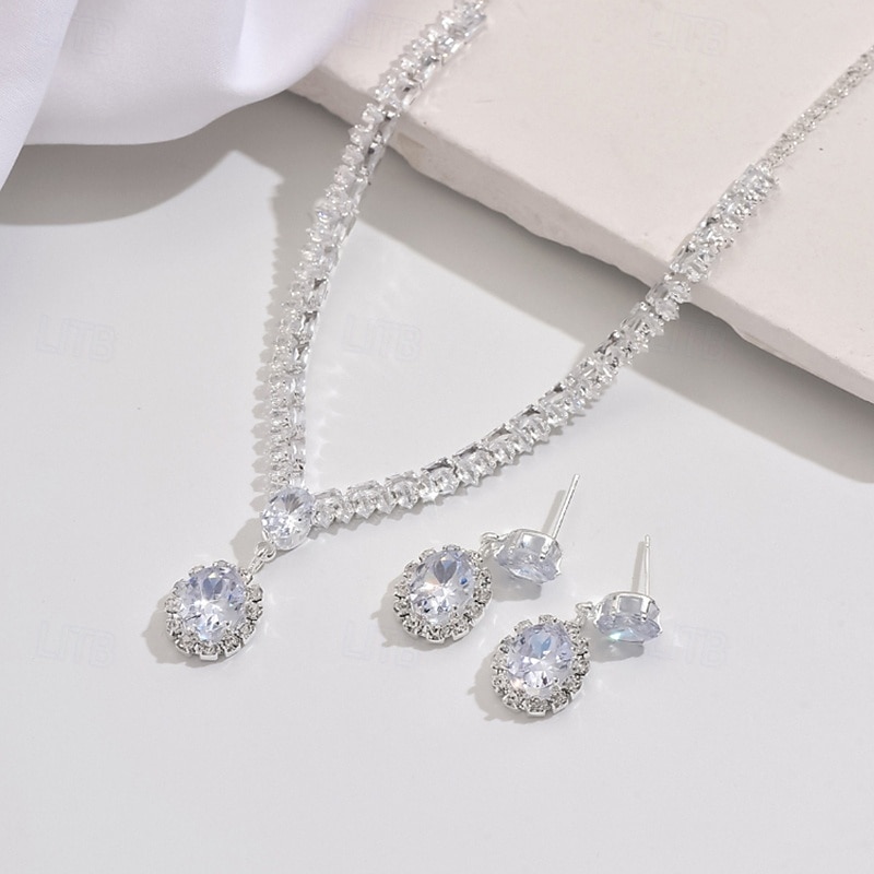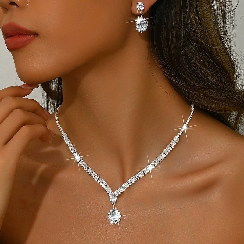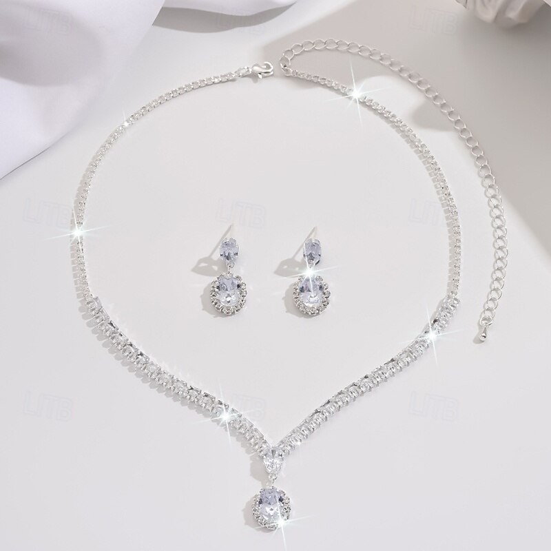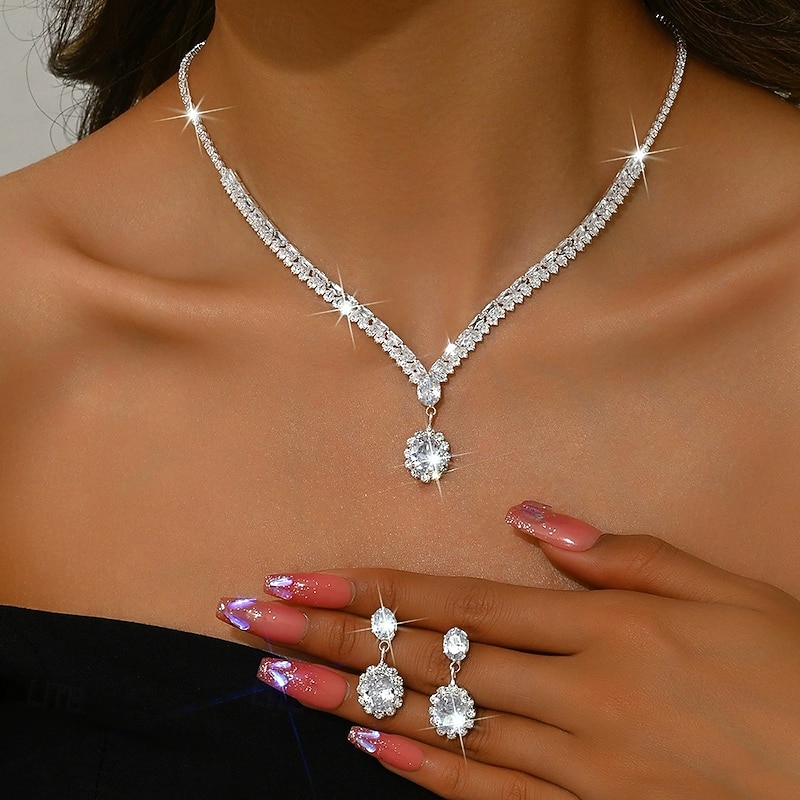 More information about Jewelry Set 3pcs Rhinestone Chrome Earrings Necklace Women's Elegant Vintage Dainty Geometrical Geometric Jewelry Set For Wedding Party Wedding Guest