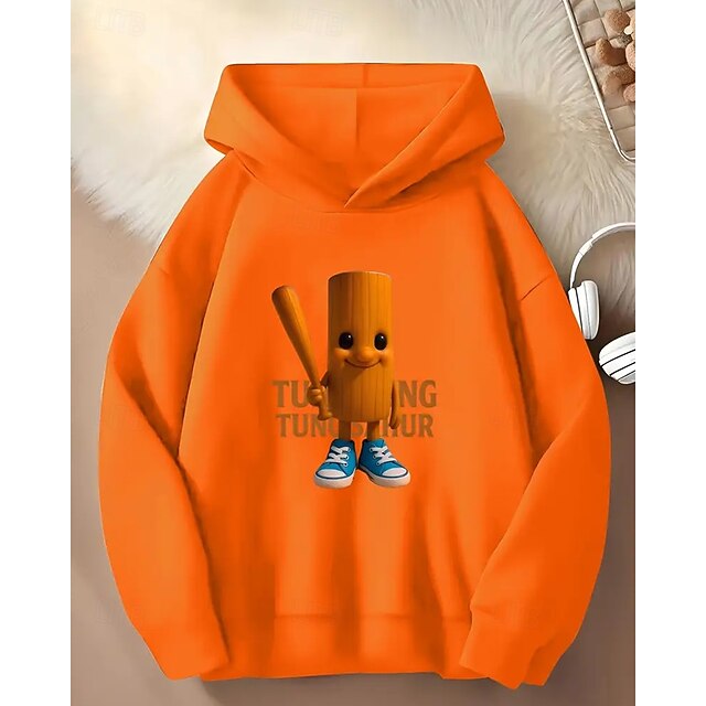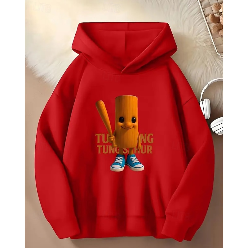 HOT ! Boys' 3D Tung Tung Graphic Hoodie Long Sleeve Spring Fall Fashion Streetwear Kids 4-12 Years Hooded Outdoor Casual Daily Regular Fit