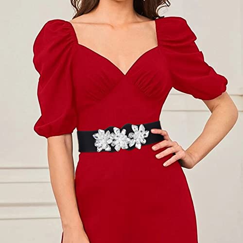 Rhinestone Stretch Belt Black Wide Dress Belt Women Elastic Belts Crystal Dressy Waist Jewelry Accessories 5