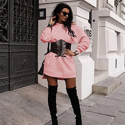Leather Corset Belt for Women Lace-up Elastic Waist Belt Retro Wide Cinch Belt Waistband for Women Dresses