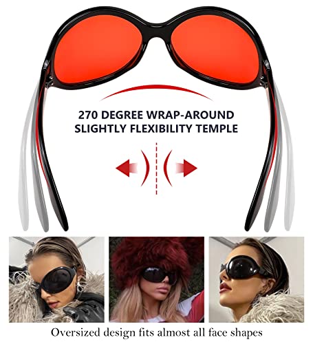 【Oversized Frame】: The Oversized Trendy Sunglasses’ frame oversized design is basically suitable for all face shapes, whether your face is big or small with this sunglasses will have oversized effect, face shape small also do not worry, with sunglasses are not easy to fall off. Shades light weight, comfortable to wear.【270° Wrap Around Design】: smooth frame edge with 270 degree wrap around sunglasses looks very fashionable and stylish, simple trendy sunglasses, makeup or no makeup with a different feeling, this butterfly sunglasses look very cool, the best choice of trendy accessories in 2023.【Super Vision】: These oval sunglasses provide great coverage around the eyes. Oval sunglasses block the wind well These glasses also have aerodynamic properties and are much more curved than regular sunglasses. With these large lenses, you won't notice the frame in your field of vision when you look at something.【Classic Oval Wrap Sunglasses Size】: Lens width: 72 millimeters(2.83''),Lens height: 50 millimeters(1.96''),nose Bridge: 20 millimeters(0.78''), Arm length: 115 millimeters( 4.52''). Suitable for the travel, beach, exhibition, party, driving, hiking, fishing, biking, boating. Daily wear with these glasses instantly enhance the temperament.【UV400 Protection Lens】: FEISEDY Lenses block 99% or 100% of UVB and UVA rays. Anti scratch, durable and easy to clean. At the same time, High-definition lens allows you to better observe the scenery in the sun, ensure clear vision and more natural vision sight. Perfect for everyday use. High quality materials and excellent craftsmanship ensure long-lasting durability.
