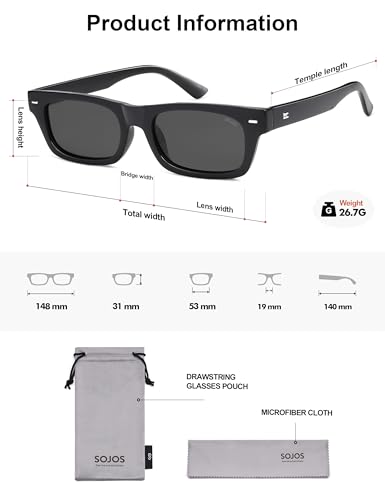 Origin: ImportedStylish Retro Design - Elevate your look with these chic trendy rectangle sunglasses featuring a plastic frame in black, tortoise, or yellow tortoise, perfect for adding sophistication to any outfit.HIGH-DEFINITION UV400 LENSES – SojoS high quality UV400 lenses can filter out sunlight reflected glare and protect your eyes from long term damage by blocking harmful UVA and UVB rays.Perfect Decoration - These Trendy sunglasses are ideal for outdoor activities like selfies, shopping, driving, and traveling, making them a versatile accessory for year-round wear.PRODUCT DIMENSION – Frame Width:148mm(5.83inches) | Lens Width: 53mm(2.09inches) | Lens Height: 31mm(1.22inches) | Temple Length: 140mm(5.51inches) | Nose Bridge: 19mm(0.75inches).Gift Ideas Package - Each pair of sunglasses comes with a microfiber pouch, cleaning cloth, and glasses paper box, making it a thoughtful and practical gift for friends and family. Perfect for everyday use. High quality materials and excellent craftsmanship ensure long-lasting durability.