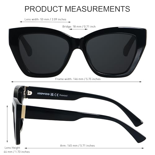 • COMFORTABLE FIT - ANDWOOD Polarized Cateye Sunglasses use solid metal hinges and sturdy frame construction. Lightweight cat eye frame and TAC lenses make these sunglasses comfortable for prolonged wear.