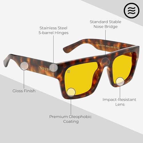 • Sleek Design: Featuring a tortoise shell gloss-finish frame with yellow lenses, our UV400 sunglasses for men with 75% transmission enhance clarity; these men's shades redefine bold style with sleek frames and effortless elegance.