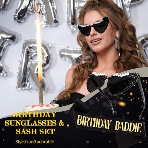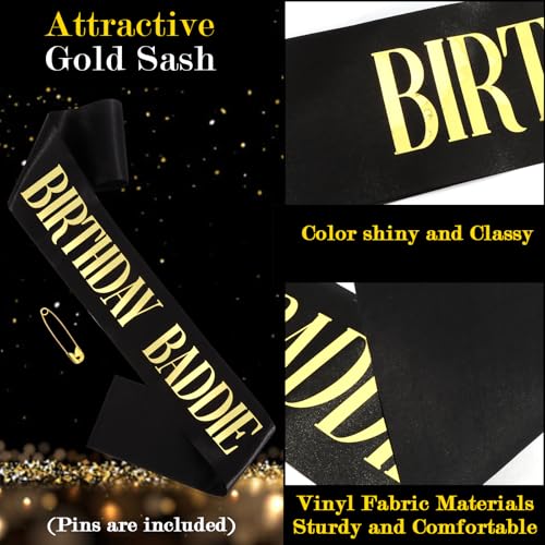 • What You Get: The birthday decorations set includes "BIRTHDAY BADDIE" sunglasses and black sash with gold foil. This sash has a cute and durable pin that will help you adjust the ribbon to fit you best.