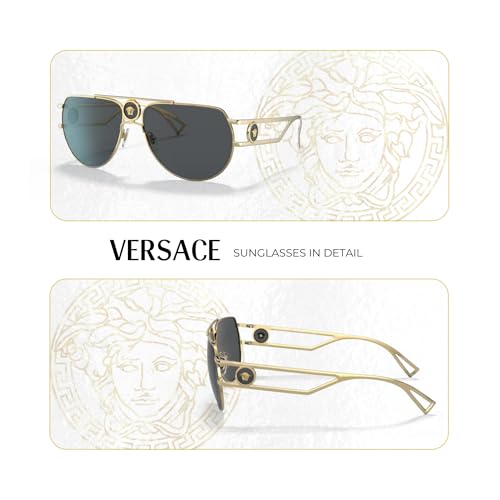 Introducing the Versace VE2231: The Versace VE2231 seamlessly blends luxury and modern design. Featuring a sleek semi-rimless aviator shape with a double bridge and the iconic Medusa logo on the temples, these sunglasses offer full UV protection. Perfect for women, they combine high-fashion style with everyday functionality. Color code: 100287.Versace Dark Grey Lenses: These lenses offer exceptional protection in intense sunlight, reducing glare and brightness. With a UV 400 rating, they provide full UVA, UVB, and UVC protection, making them ideal for bright outdoor conditions while ensuring both style and effective sun defense.✅ Non-Polarized Lenses with UV Protection & Natural Clarity: These lenses are non-polarized, offering full UV protection while maintaining natural color perception—great for everyday outdoor use.✅ Comfortable, Lightweight Frames for All-Day Wear: Crafted from durable, lightweight materials that provide long-lasting comfort during travel, errands, or time in the sun.✅ Eyewear Care Kit Included for Easy Maintenance: Comes with a microfiber cloth, lens spray, and mini screwdriver—everything you need to clean, adjust, and protect your sunglasses. Perfect for everyday use. High quality materials and excellent craftsmanship ensure long-lasting durability.