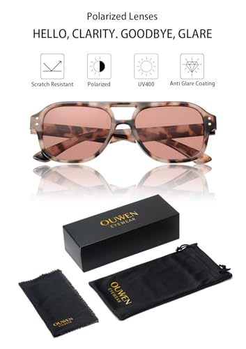 OUWEN Retro Polarized Square Aviator Sunglasses Womens Mens, Trendy Designer Rectangle Sun Glasses 70s Shades OW2239 5