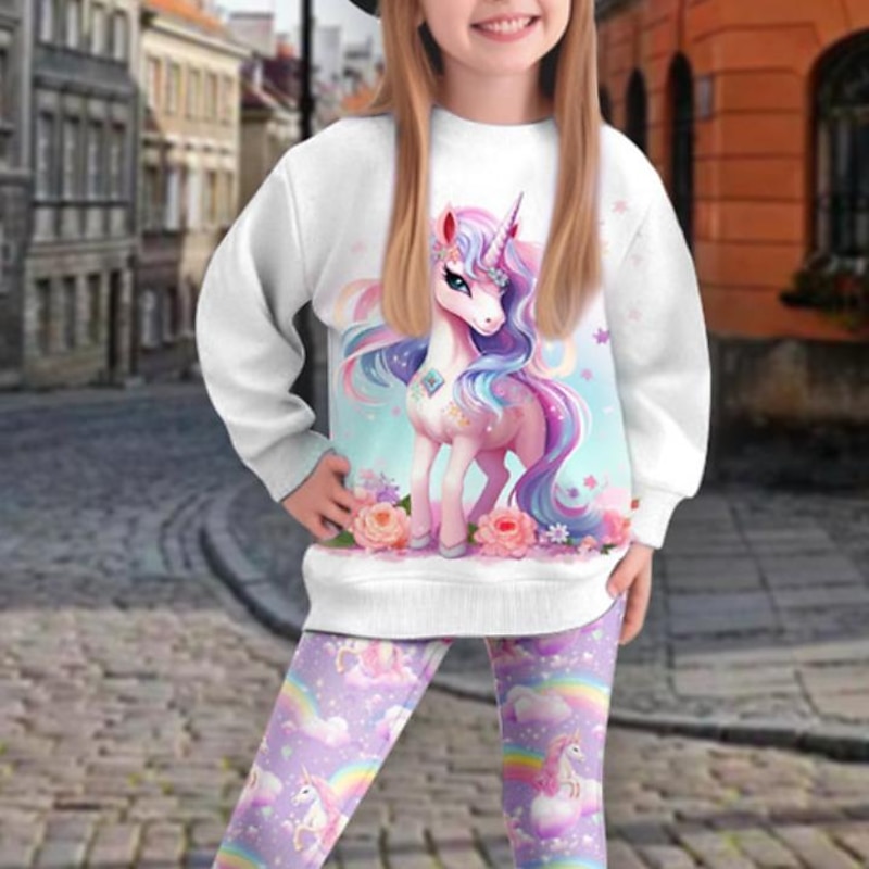 Why Choose Girls' 3D Cartoon Unicorn Sweatshirt & Legging Set Set Long Sleeve 3D Print Fall Winter Active Fashion Daily Kids 3-12 Years Crew Neck Outdoor Vacation Date Regular Fit?