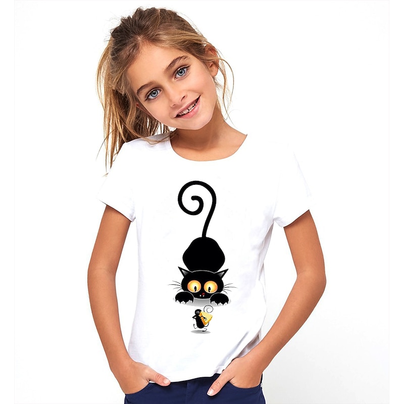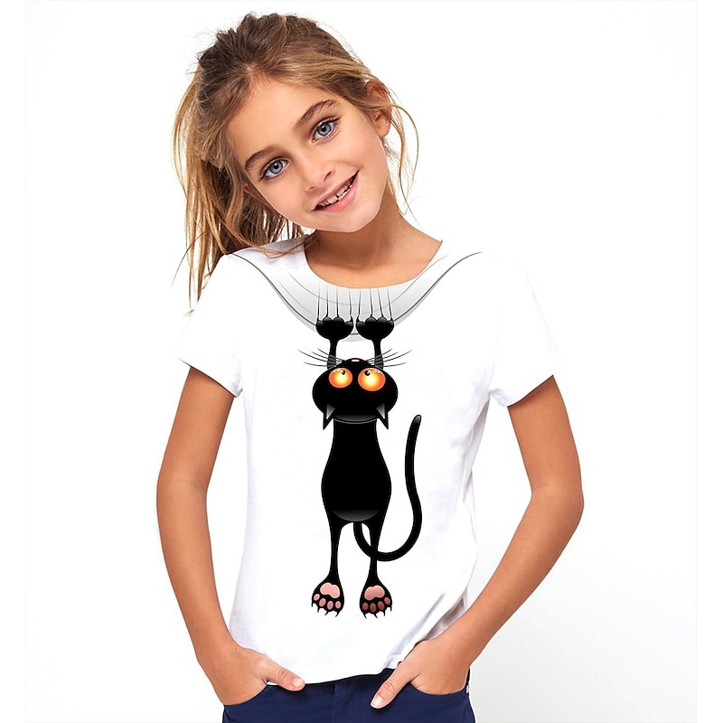 Why Choose Girls' 3D Animal Cat T shirt Tee Short Sleeve 3D Print Cute Basic Polyester Kids?