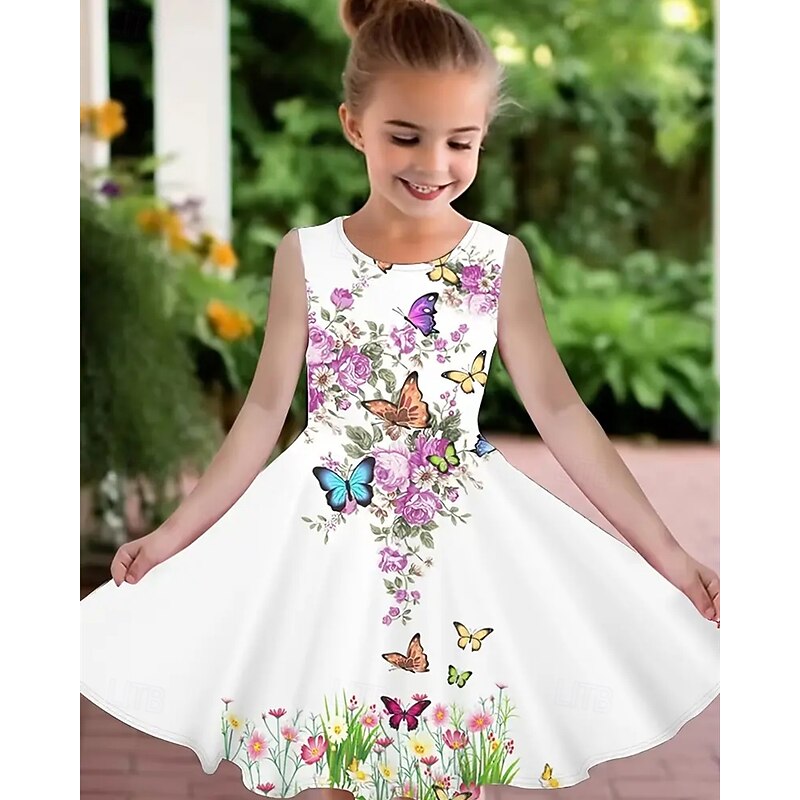 Why Choose Girls' 3D Floral Graphic Butterfly Dress Sleeveless Summer Spring Vacation Daily Holiday Princess Beautiful Sweet Kids 4-12 Years Casual Dress A Line Dress Knee-length Regular Fit?