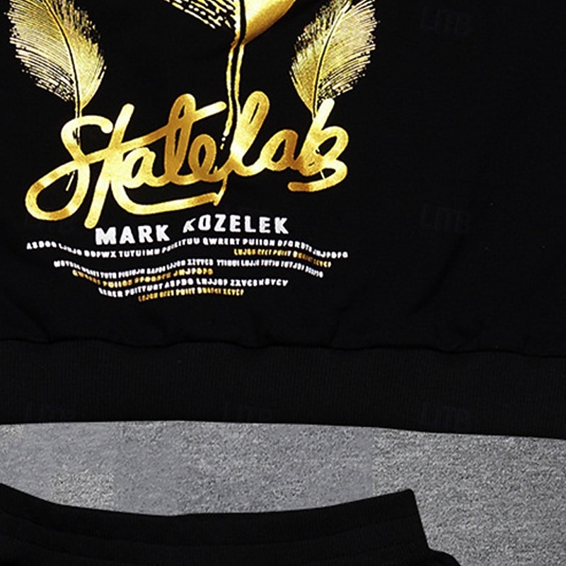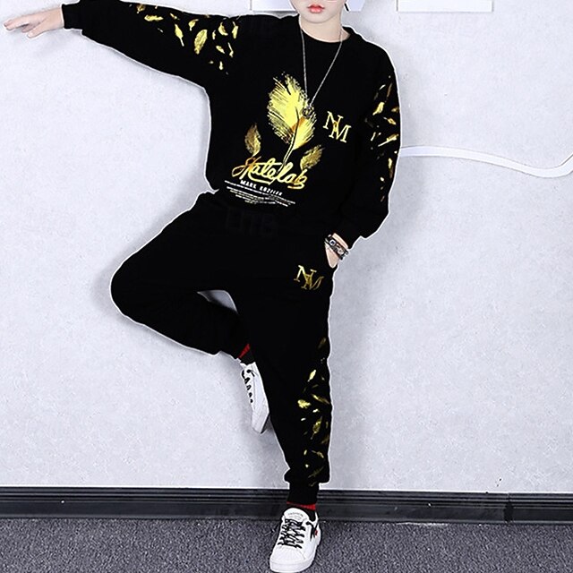 More information about 2 Pieces Kids Boys Suit Sweatshirt & Sweatpants Set Clothing Set Outfit Graphic Long Sleeve Crewneck Set Outdoor Sports Fashion Spring Fall 4 years+ Black