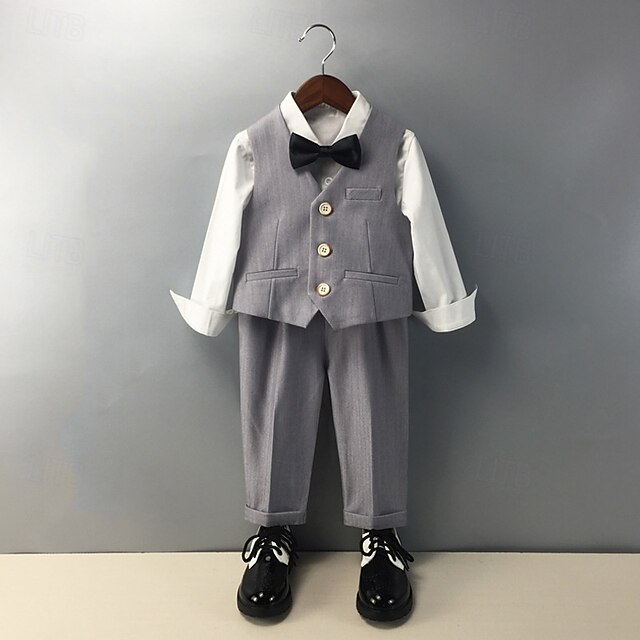 More information about 4 Pieces Ring Bearer Suit Boys Kids Suit Formal Suit Vest & Pants Formal Party Valentines Fashion Cool Solid Color Pocket Beige Gray Polyester